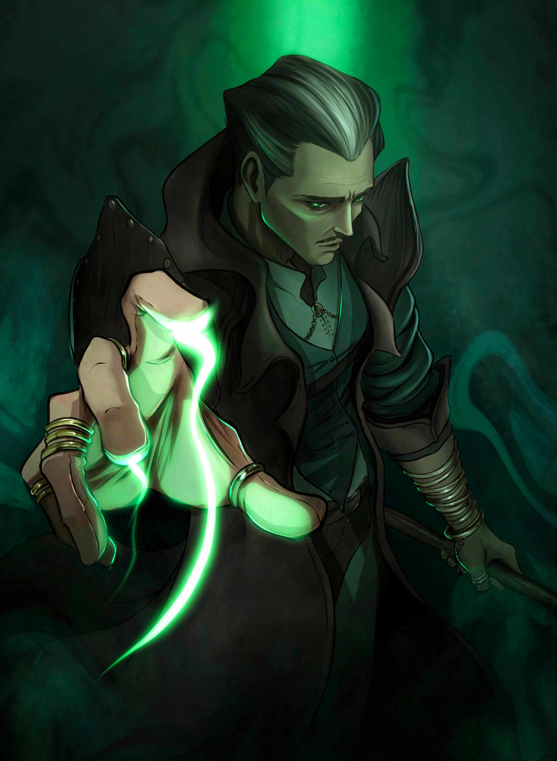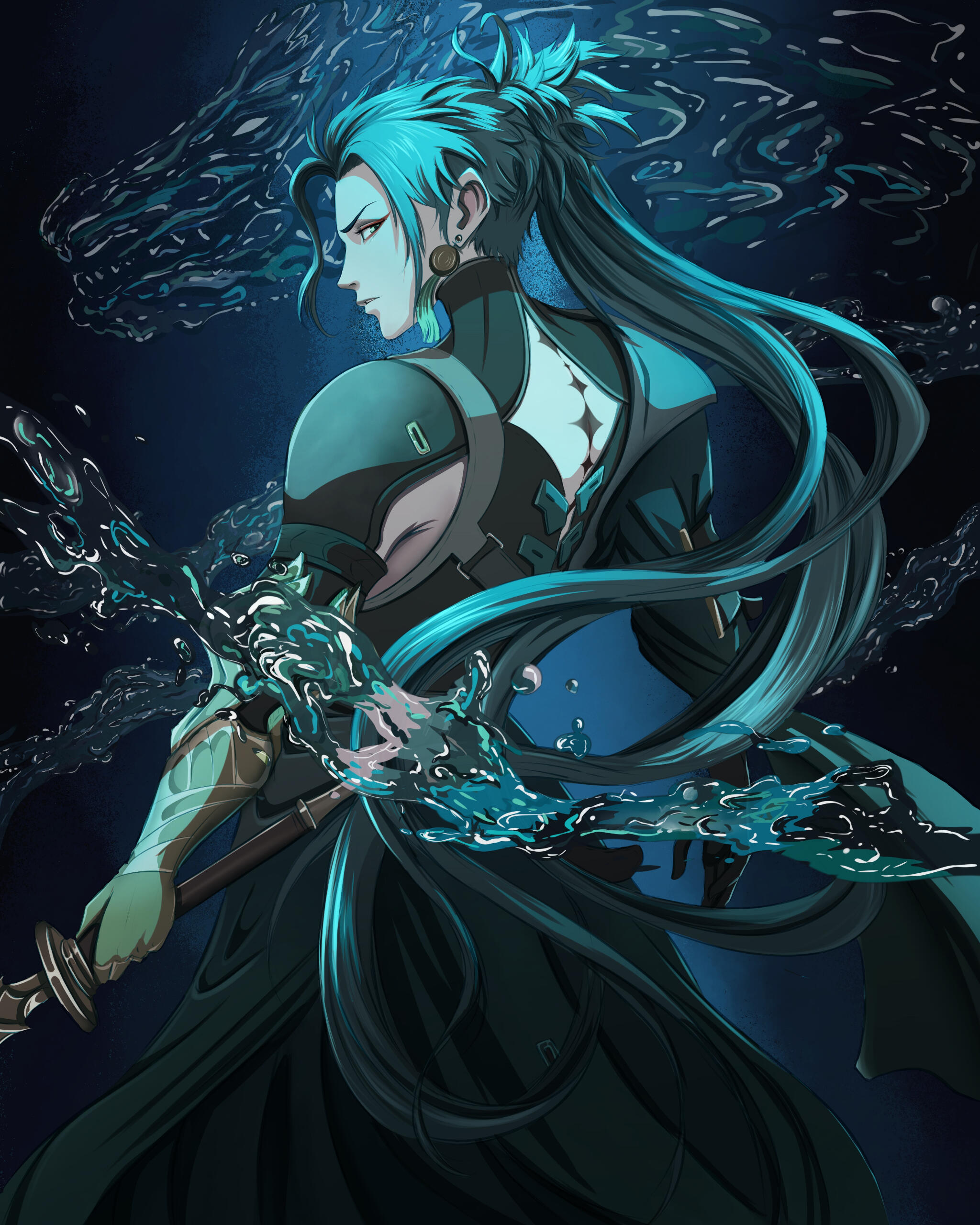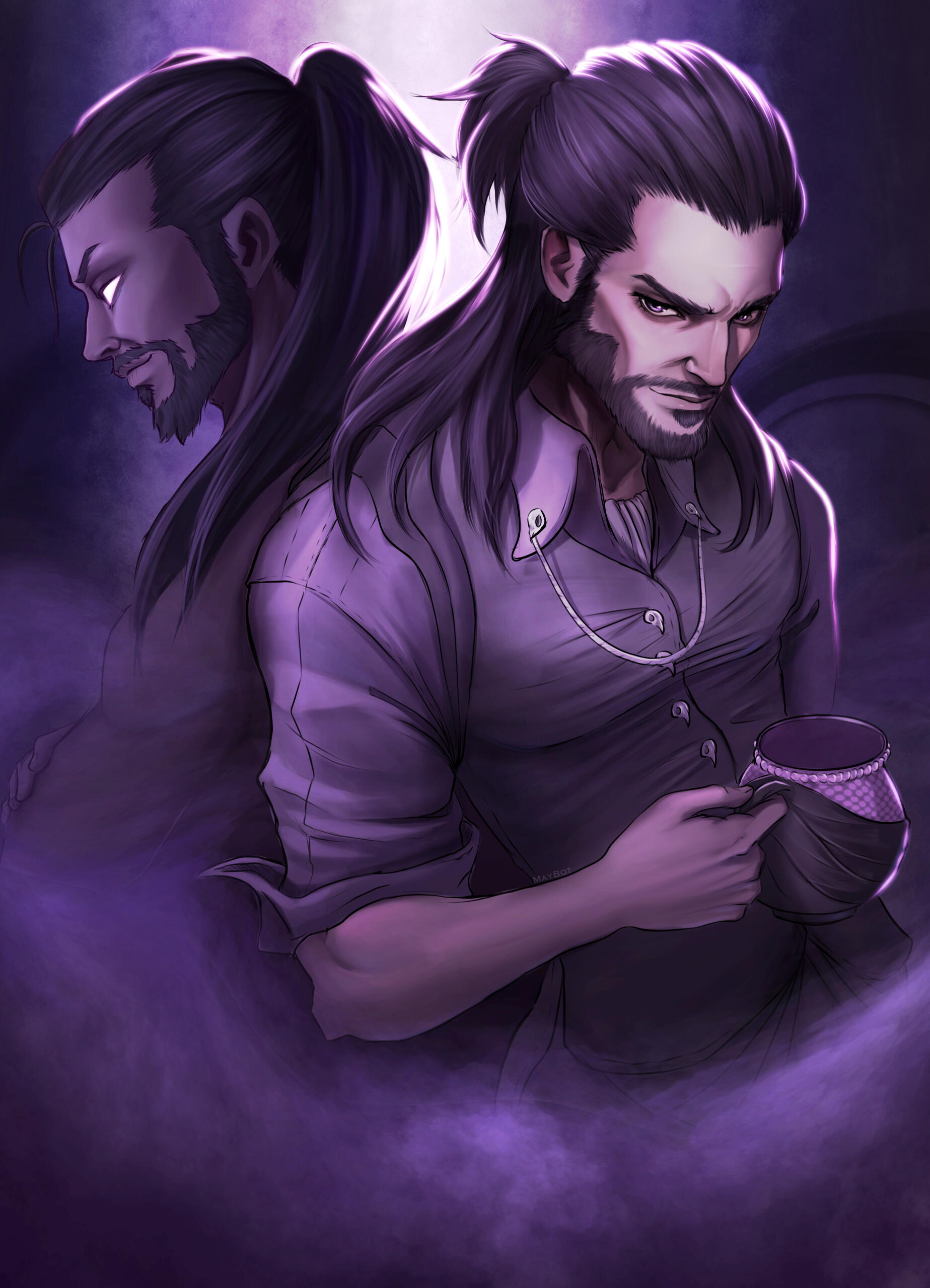 Character from waist/hip and up.